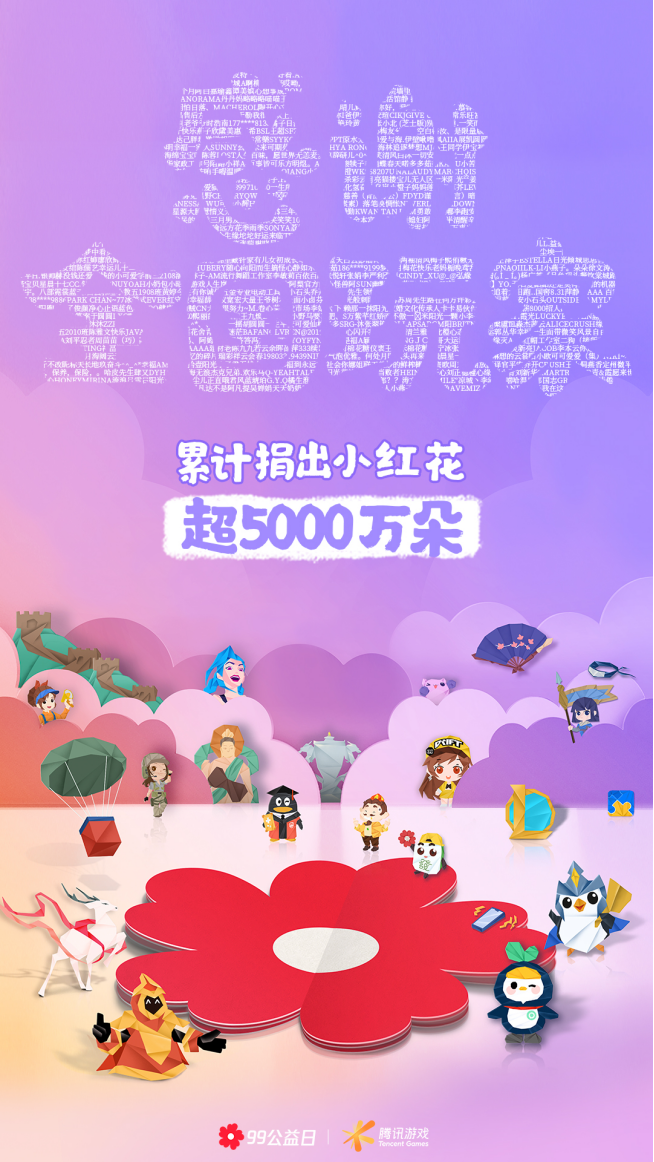 刚刚落幕的“99公益日”,游戏用户参与公益热情高涨,累计捐献小红花超5000万朵,上亿玩家以游戏互动的方式,共同助力了文物保护、关爱青少年健康成长、乡村振兴、航天科普等共计7个公益梦想目标达到可执行标准。后续,腾讯公益基金会将遴选符合条件的公益合作伙伴落实上述公益梦想。