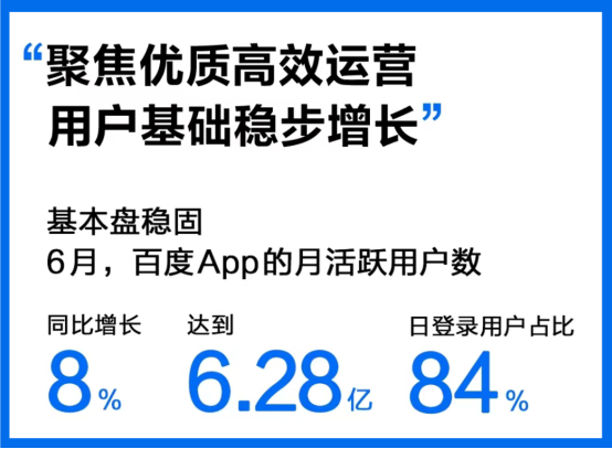 在过去一年里,百度移动生态战略得到实践检验,依靠技术壁垒建立的优势凸显,加深加固搜索基本盘。同时,百度最新发布的2022年Q2财报显示,百度App增长强劲,月活用户达到6。28亿,同比增长8%。用户找“内容+服务”的消费习惯逐渐养成,百度已成为中国领先的综合性信息和服务平台,多个创新业务取得高质量增长,多元化收入格局崭露锋芒。