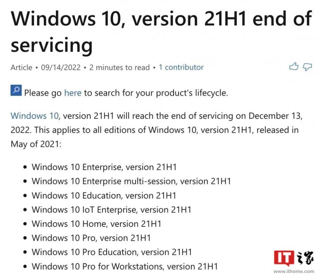 9 月 16 日消息,微软已通知Windows 10 21H1用户,他们继续使用的操作系统将很快停止支持。