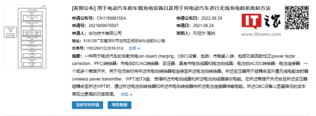 9 月 20 日消息,随着电动汽车的不断发展,相关技术也在快速进步。今日,华为技术有限公司的“用于电动汽车的车载充电设备以及用于对电动汽车进行无线充电的系统和方法”专利公布。