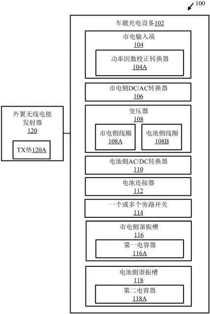 专利申请书显示,目前的电动汽车充电技术通常可分为车载充电(on-board charging,OBC)、非车载充电和无线充电 (wireless charging,WC)。对于传统无线充电和传统车载充电系统集成度较低这一问题,该专利提供了解决方案。