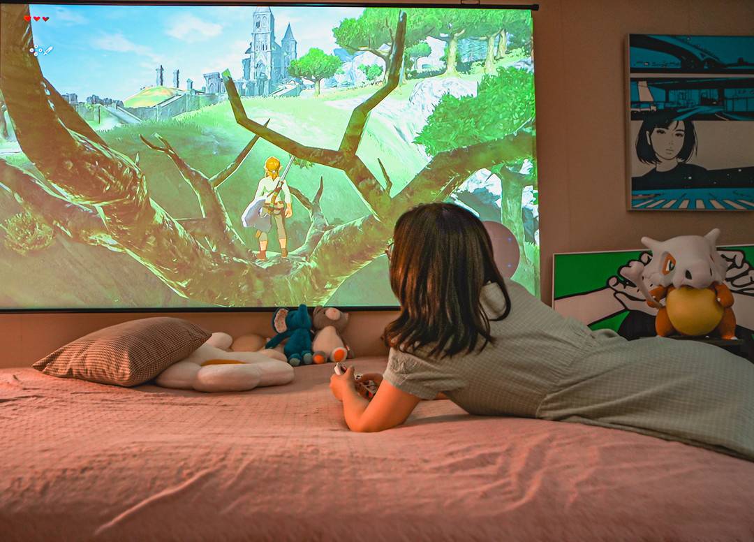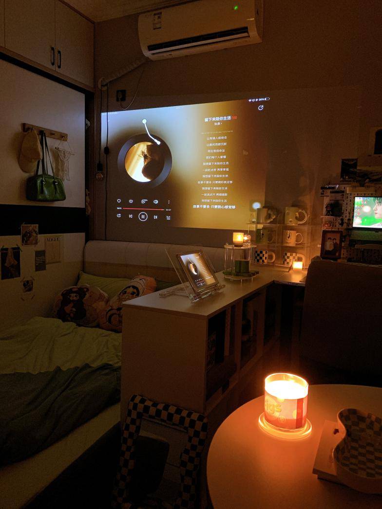 考虑到很多用户顾虑安装幕布太麻烦还占空间的问题,当贝NEW D3X则完全解决了这方面的难题。当贝NEW D3X拥有1050ANSI流明的亮度足以在卧室使用,只需要一面白墙,画面清晰又通透。1080P的分辨率,晚上观影就像在电影院一般,0。33”DMD芯片带来的细腻画质和饱满的色彩给你影院级享受。把家中的空白墙面利用起来,不用做墙饰、买幕布,省下不少费用和麻烦,一样能体会到大屏观影的乐趣。周末宅家的日子,吃炸鸡,喝奶茶,窝在沙发里投影看电影,再惬意不过了。