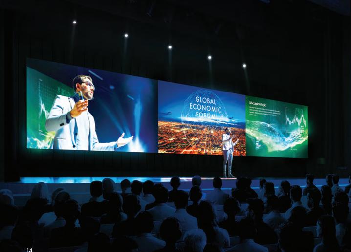 凭借芯片的优化和封装技术的升级,屏幕发光源无遮挡范围也有了大幅提升。即使在大角度下观看,也能获得出色的颜色内容转达,无论在哪个角度都能拥有一样出色的广视角观看体验。如此灵活的模块化设计和完美的视觉体验,也使其更加适配于高端会议、企业大堂、办公室和礼堂等应用场景。