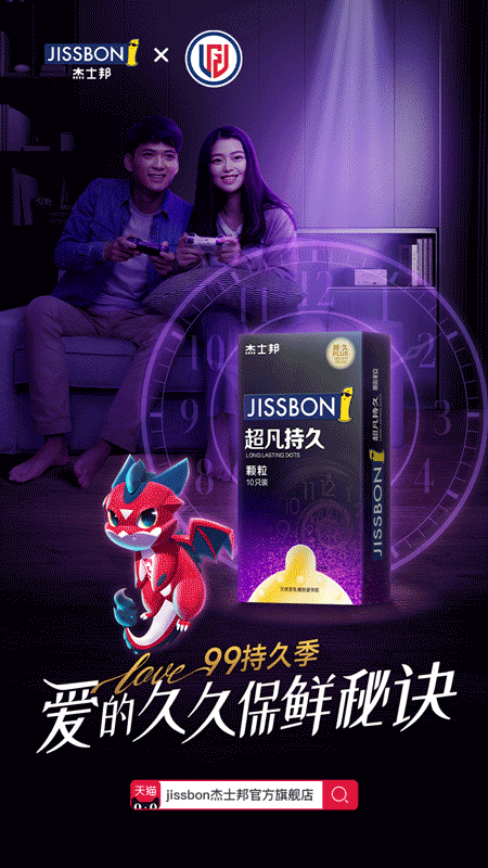 以寻觅持久热爱为出发点,杰士邦发布爱的久久保鲜秘诀,拒绝三分钟热度,杰士邦持久系列转动时间的齿轮,散发持久魔力,一路为你保驾护航带来持久不灭的激情与热恋。比如构建电竞游戏场景,匹配杰士邦超凡持久颗粒,刺激的电动游戏以及内有立体颗粒的套套,更刺激,不一般的刺激与愉悦,液态苯佐卡因的添加更持久,延长欢愉时光,这就是持久热恋的秘诀,无拘束,更刺激,大胆爱!越投入越热爱!