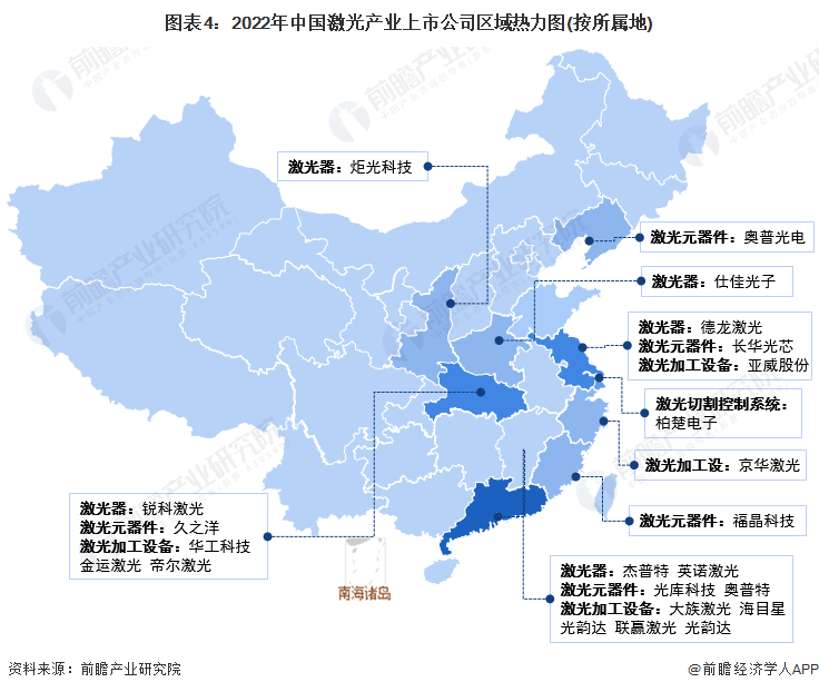 激光产业相关上市公司较多,激光元器件企业具备较好的竞争优势,那些原本从事激光器生产和销售的企业正在往下游激光加工设备和激光应用解决方案领域拓展。