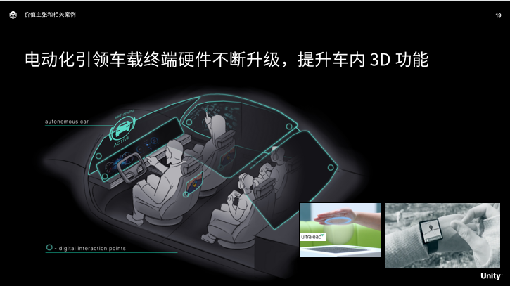 Unity 本身已在移动端的实时3D内容开发和运营上取得了巨大成功,因而能将相关的成熟技术和成功经验引入智能网联汽车产业。