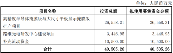根据公司披露的《深圳市路维光电股份有限公司首次公开发行股票并在科创板上市招股说明书》,公司首次公开发行股票募集资金投资项目及募集资金使用计划如下: