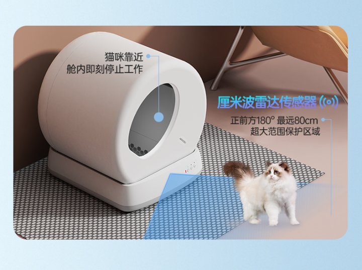 从品牌表达来看, OPPO和优必选科技基于双方在各自领域的品牌声量,以及技术和资源上的积累,凭借差异化的功能设计和体验优化,让空气萝卜自动猫砂盆在众多同类厂家中成功出圈。在产品力上,“擒贼先擒王”,毛孩子的安全最重要,空气萝卜智能猫砂盆通过“桶仓一体”的差异化安全结构设计,以及自动驾驶同源技术“厘米波雷达”的启动,叠加多重黑科技智能守护,从根本上杜绝了夹猫风险,打消猫咪和宠物主的使用顾虑。