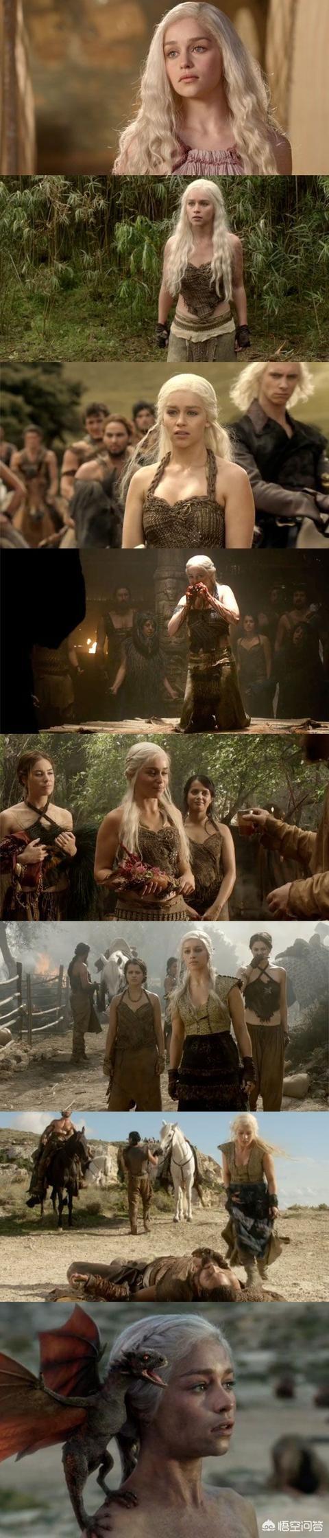 第一步:刚开始作为哥哥交换的筹码,虽然不情愿但是也和多拉斯人马王卓戈卡奥王 “政治联姻了”。之后爱上马王,在马王死了以后多拉斯人大部分壮年脱离选了新马王,龙女选择陪葬,却成为天选之人火里重生孵化出了龙,也成功进阶为龙母。