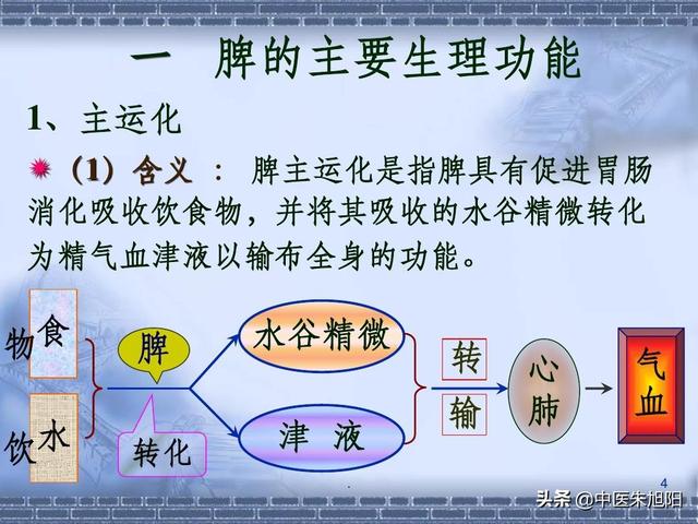- 脾将饮食的营养精微,向上输送到心肺,因心主血脉,肺主气司呼吸,精微可转变为气血,营养周身,这个过程是“脾主升清”,清代表着精微气血。胃的另一个作用是将已被吸收精华的糟粕部分,下传到肠道,再排出体外。这就是“胃主降浊”。浊当然指粪便等糟粕部分了。