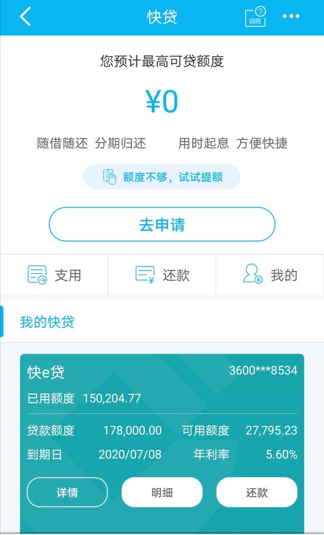 1.某行快贷:15万多,7月份到期。这个是5.6%的年利息。我主要是借这个。没钱就借,有钱就先还点。