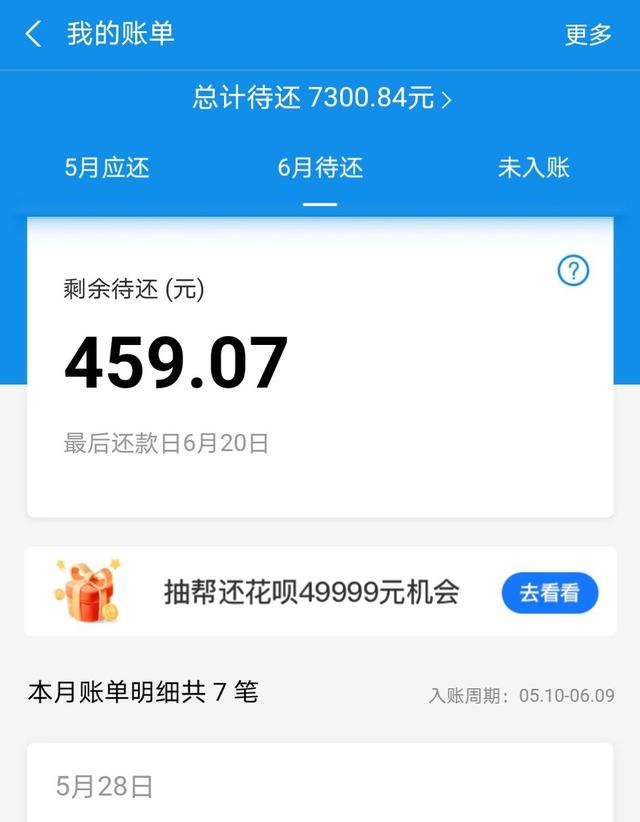 我是等着在7月份发海外工作补贴,这个补贴是将近7个月份的海外工作补贴,大概有15万多,加上6月份的工资和奖金,差不多二万。正常情况下,我堪堪够还帐。