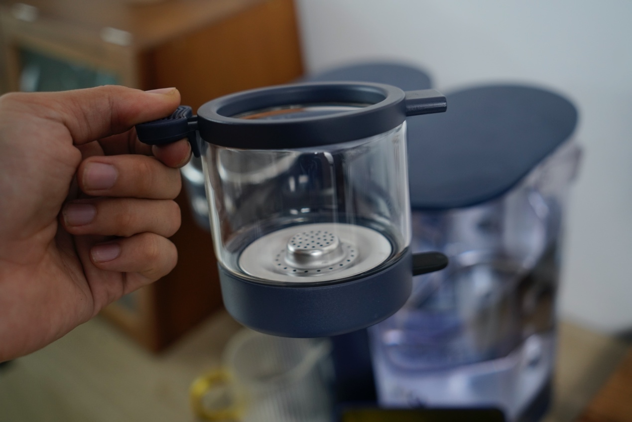整体机器的设计质感十足,可以说放在家里也是非常添彩的一个摆件,磁吸式茶蓝的设计和蓝光水箱都是我比较钟意的点,再加上触控面板和APP直连的操作方式,让我这个一直习惯传统饮茶方式的人感受了一次别开生面的“科技潮范儿”。