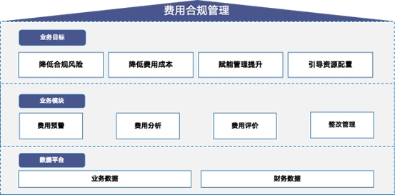 智能费用合规管理平台旨在通过业务及财务数据的归集,通过费用风控、费用分析、费用评价、整改管理四个主业务模块,对费用该不该花、费用花的对不对、费用花的好不好进行深入分析,并形成闭环式整改完善跟踪管理,助力实现精细化费用管理、降低合规风险、提升管理能力、引导资源配置的业务目标。