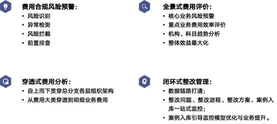产品以深挖数据价值,支撑财务决策为导向,聚焦于费用预警、费用分析、费用评价及整改管理领域,助力企业实现降低成本、减少风险、提升管理、优化资源配置。