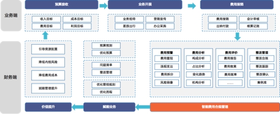 智能费用合规管理平台目标成为业务端与财务段深度融合中的重要一环,通过承载费用数据,进行价值挖掘,将数据从断点到联通,将费用合规管理和分析从线下人工经验化到线上系统智能化,将整改管理从单线输出到闭环整合,从而推动业务深度融合。