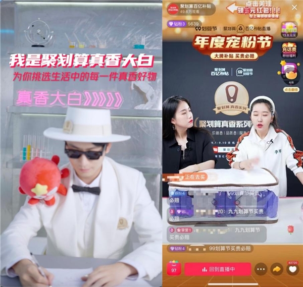 此外,顺应当下电商从货架陈列走向内容驱动的时代背景,「真香系列」作为一个新上线的业务,势必要通过短视频及直播等新的内容形式,将其背后的消费者价值以简单明了的方式传递出来,从而占据消费者更多的心智记忆点。所以,除了有趣的营销概念“真香罐头”之外,聚划算还推出了系列种草栏目及聚划算百亿补贴直播间的真香专场环节,并通过名为“真香大白”的首席测评官,展现出聚划算「真香系列」货品严谨细致的选品标准。为触达更多的精准消费者,聚划算首席测评官“真香大白”还与各个测评类、美食类等垂直赛道的超头部达人合作,将「真香系列」严谨且有趣、专业又全面的选品及测评过程呈现给消费者,让消费者切实体会到“真香认证”的来之不易,从而对「真香系列」更放心、更接受,也为商家打造新晋爆款铺垫了流量及内容基础。
