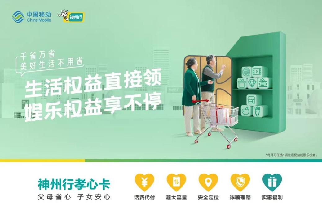 中国移动神州行孝心卡是中国移动针对60岁以上老年群体推出的专属爱心产品,内含防诈服务、话费代付、云守护定位、亲情畅打、超大流量及实惠福利六大适老权益。已经为父母办理的同事小陈告诉我们:“中秋节送父母神州行孝心卡太适合了。以后即使离家在外,我也能时刻通过孝心卡了解父母的情况,在外工作更加安心。”