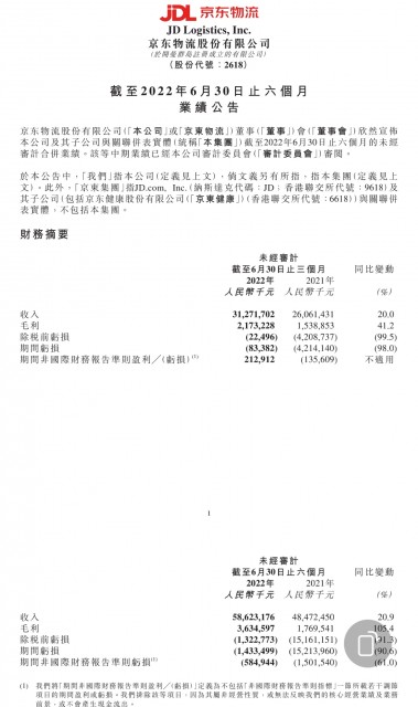 京东物流2022年二季度快递快运等客户收入增长41.6%散单快递收入增速超60%