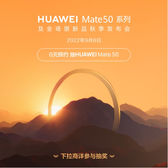 近日,华为终端微博正式官宣将于9月6日召开华为Mate50系列及全场景新品秋季发布会,推出华为Mate50系列旗舰及全场景新品,并且微博展示了一个圆环从山峰上升起的画面,配文“破晓而出,巅峰相见”。对此,不少圈内外人士都对这款时隔两年的巨作满怀期待。目前,京东已开启了华为Mate50系列预约活动,参与预约还有机会赢取新品,想抢先一步入手这款新品的小伙伴,记得锁定京东。