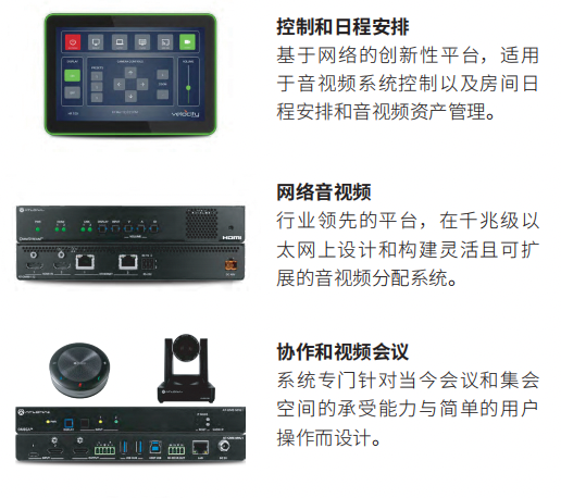按应用划分的解决方案,爱特龙的解决方案在众多不同的会议和演示环境下完全适合最终用户的各类要求。