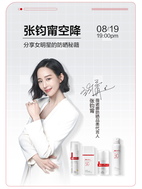 8月19日,薇诺娜防晒品类代言人张钧甯进驻直播间,分享自己有趣的“室内晒黑”经历,以及在夏季需要根据不同场景针对性使用防晒的护肤心得,大流量吸引粉丝引爆,直接转化销售,同时开创首个专业耐扛力直播间,以实力见证产品表现力。