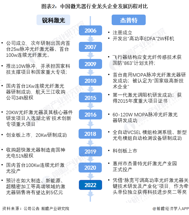 锐科激光成立于2007年,是国内第一批光纤激光器研制企业,2018年在创业板成功上市。2008年,公司研制出国内首台25w脉冲光纤激光器和首台100w连续光纤激光器,打破国外垄断。之后,公司又相继研发出国内首台1Kw、4Kw、6Kw、10Kw、100Kw连续光纤激光器,保持国内技术领先位置。