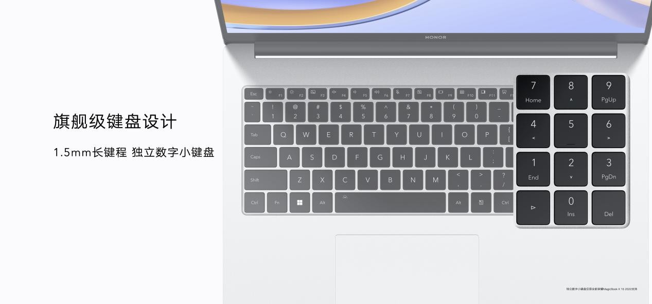 对于全新荣耀MagicBook X 16 笔记本 2022来说,16英寸护眼全面屏,让用户视野更加广阔。外观层面,同样采用全新架构设计,整机重量轻至1。75Kg。除了金属转轴外盖一体化设计之外,还搭载了旗舰级键盘设计,支持独立数字小键盘,配合大尺寸方向键盘,让数据录入更高效。