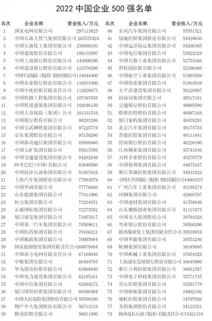 9 月 6 日消息,今日,中国企业联合会、中国企业家协会发布“2022 中国企业 500 强”榜单,国家电网第一,中石油、中石化分列二三位,京东位列 15 位,阿里巴巴位列 19 位,腾讯位列 39 位。