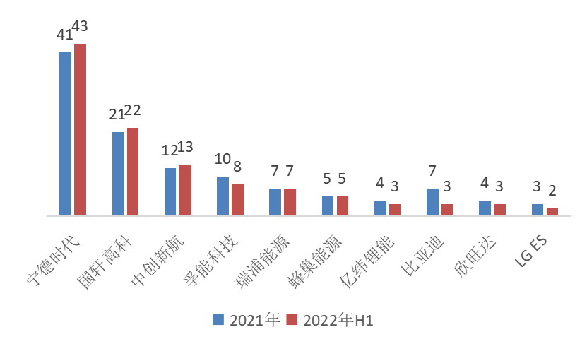 具体看来,2022年上半年电池企业配套乘用车TOP10的企业分别是:宁德时代、国轩高科、中创新航、孚能科技、瑞浦兰钧、蜂巢能源、亿纬锂能、比亚迪、欣旺达、LG新能源。