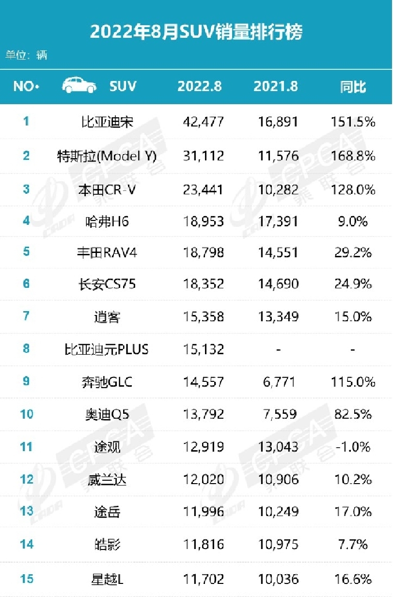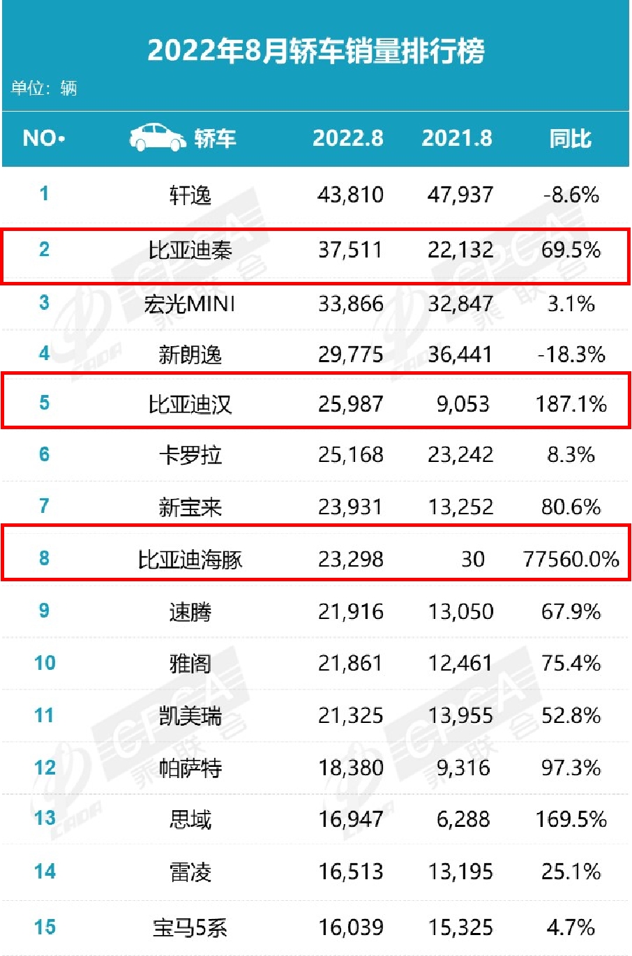 原文标题!乘联会8月销量排行出炉,比亚迪秦错失销冠,宋家族依旧能打