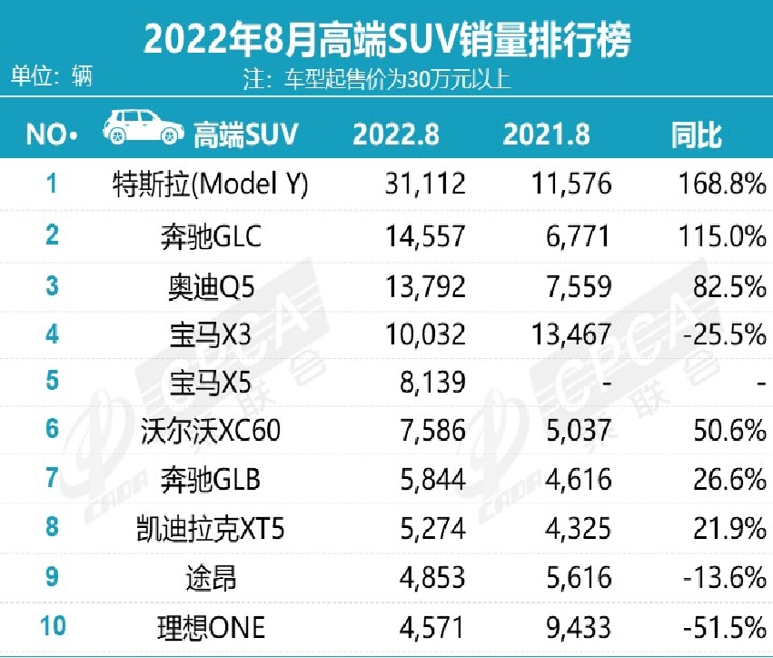 宝马虽然在高端轿车市场夺冠,但在高端SUV市场,卖得最好的还是特斯拉Model Y,如果仅看燃油SUV的话,奔驰GLC无疑才是王者,8月销量达到了14557辆,同比大增115%。紧随其后的则是奥迪Q5,销量达到了13792辆,同比大增82.5%。奔驰GLC和奥迪Q5同比销量大增的主要原因,其实也是受去年芯片短缺影响,而8月销量大增,也恰恰说明了现在奔驰和奥迪已经摆脱了芯片危机,开始与宝马正面对抗。