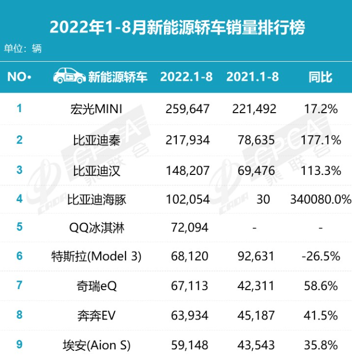 当然,俗话说群众的眼光是雪亮的,销量低的车型不一定差,但是销量高的车型肯定有自己的独到之处。今天,小黑就根据今年 1-8 月新能源汽车销量排名,简要分析新能源汽车市场格局。