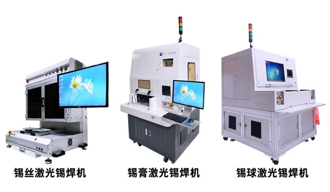激光焊锡是使用比工件熔点低的锡金属作钎料,以激光束(半导体激光器)为加热热源,辅助加热电子器件的引脚、无引线器件的焊盘,甚至直接加热焊膏、焊球、锡丝、锡环等焊料,通过直接表面热处理的方式使焊料呈现熔融的状态,熔融的焊料在表面张力和重力的作用下,在焊盘、引线、器件端面等金属之间由于元素的扩散形成金属间化合物层,从而达到冶金连接作用。是一种新型的激光焊接工艺,深圳紫宸专注于激光焊锡应用近十年,目前产品已涵盖各种锡丝、锡膏、锡球及锡环等焊接工艺的设备。