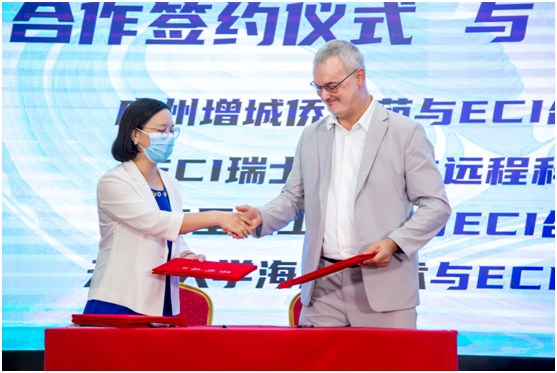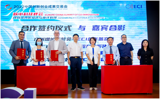 9月2日,由中国创新创业成果交易会办公室主办,在广州市增城区海外联谊会的指导和支持下,由ECI欧中科技创新中心(比利时)、欧中科技(广州)有限公司承办的“2022中国创新创业成果交易会-欧中科技峰会”在广州增城侨梦苑园区线下、线上同步隆重举办。广州市委统战部副部长江帆、一级调研员曾真栋、市科协一级调研员程志鹏,增城区有关部门及广州增城侨梦苑11个园区代表于现场出席了峰会,并在峰会现场向西班牙马德里理工大学亚洲事务校长代表Xavier Ferre 夏伟教授,天津大学海洋学院国家重点研发计划项目首席科学家、国务院特殊津贴专家张安民教授,以及其他参会专家表示了欢迎,并进行了探讨交流。作为本届峰会的指导单位,广州增城侨梦苑与ECI在峰会中签署了合作备忘录。