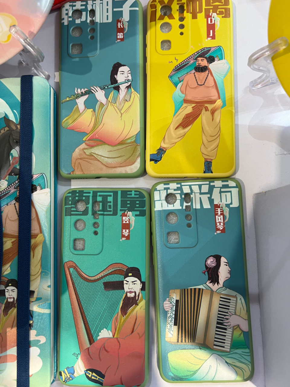 在烟台展位,记者发现“八仙”主题城市文创也走在时尚前沿,比如张果老、何仙姑、吕洞宾等神话人物在文创设计中都变得潮起来,弹起了吉他、敲起了架子鼓。