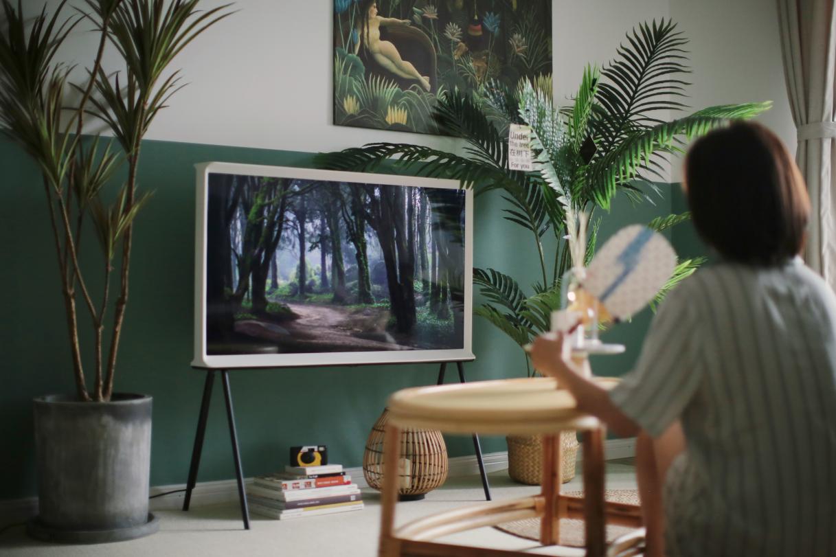 The Serif画境电视拥有着高颜值外观和独具一格的设计,自然地坐落在任何空间当中,可以在视觉上带来焕然一新的新鲜感和家居氛围的艺术感。