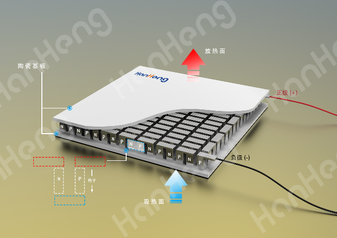 热电半导体技术,是一种可以实现热和电直接相互转换的技术,其中,半导体制冷技术是利用半导体珀尔帖Peltier effect效应的制冷/制热技术,即由N-P型热电半导体构成的PN结,通电后两端产生吸热和放热现象。因此,半导体制冷又称电子制冷,或固态热泵技术。