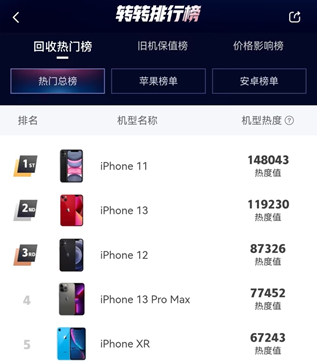 对于消费者来说,转转平台提供的回收服务能帮用户比其他渠道多卖15%至20%,可以实现更多的回血,降低换机成本,因此也拉升了旧机型的回收量。