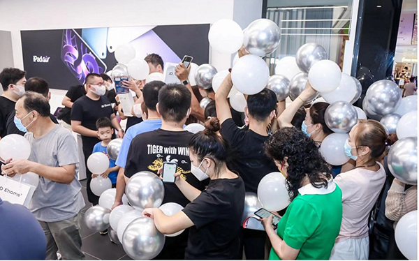 9月3日,全国首家京东自营Apple授权店JD Ehome在北京木樨园合生广场正式开业,商场中庭举行特别活动,气球雨从天而降,门店还限量发放开业纪念T恤、纪念徽章等精美礼品,吸引广大消费者打卡围观。
