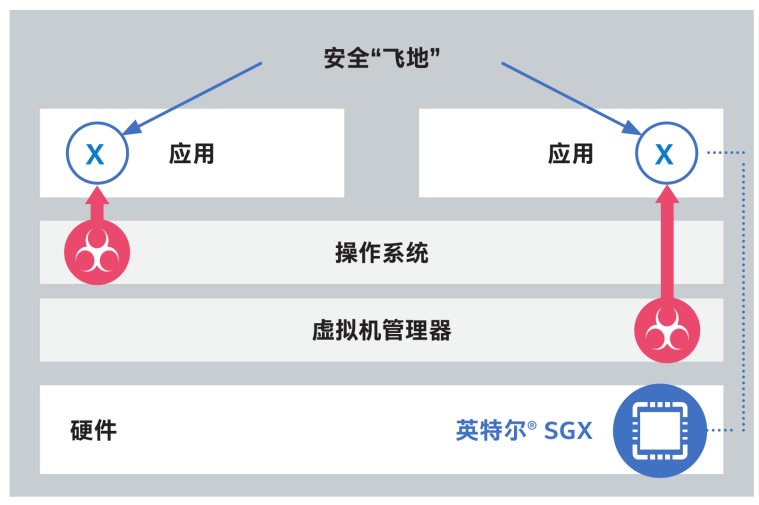 要知道,英特尔® SGX 一直是业内机密计算方案的主要推动者。英特尔® SGX 在内存空间中“开辟”出了一个可信的、受到严密保护的安全“飞地”,可通过严格的访问控制和加密操作去保障数据完整性、数据机密性和代码完整性,确保主机操作系统、BIOS 等高等级应用和底层基础系统都不能对其随意访问。即便应用、底层基础系统在恶意攻击中受损,“飞地”也可通过基于硬件的、增强型的安全防护来阻断攻击。