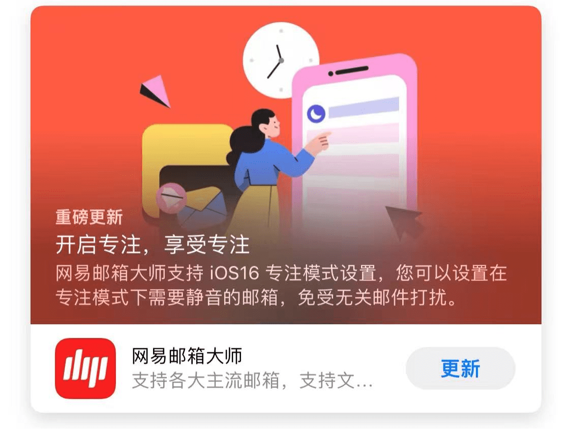 作为第一个适配iOS 16专注模式的邮件客户端,网易邮箱大师有自己的洞察和考量。