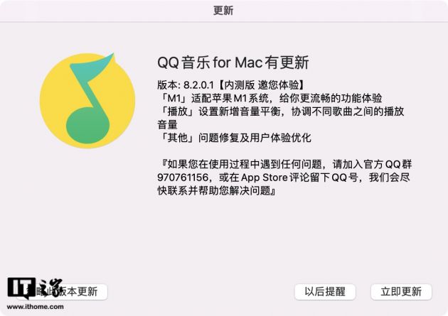 5 月 7 日消息,据网友反馈,近期腾讯QQ音乐发布了 macOS 内测版 8。2。0。1 更新,新增支持适配苹果 M1 系统,带来更流畅的功能体验。