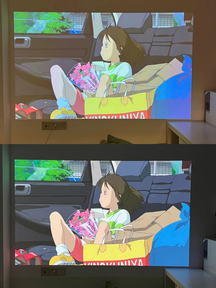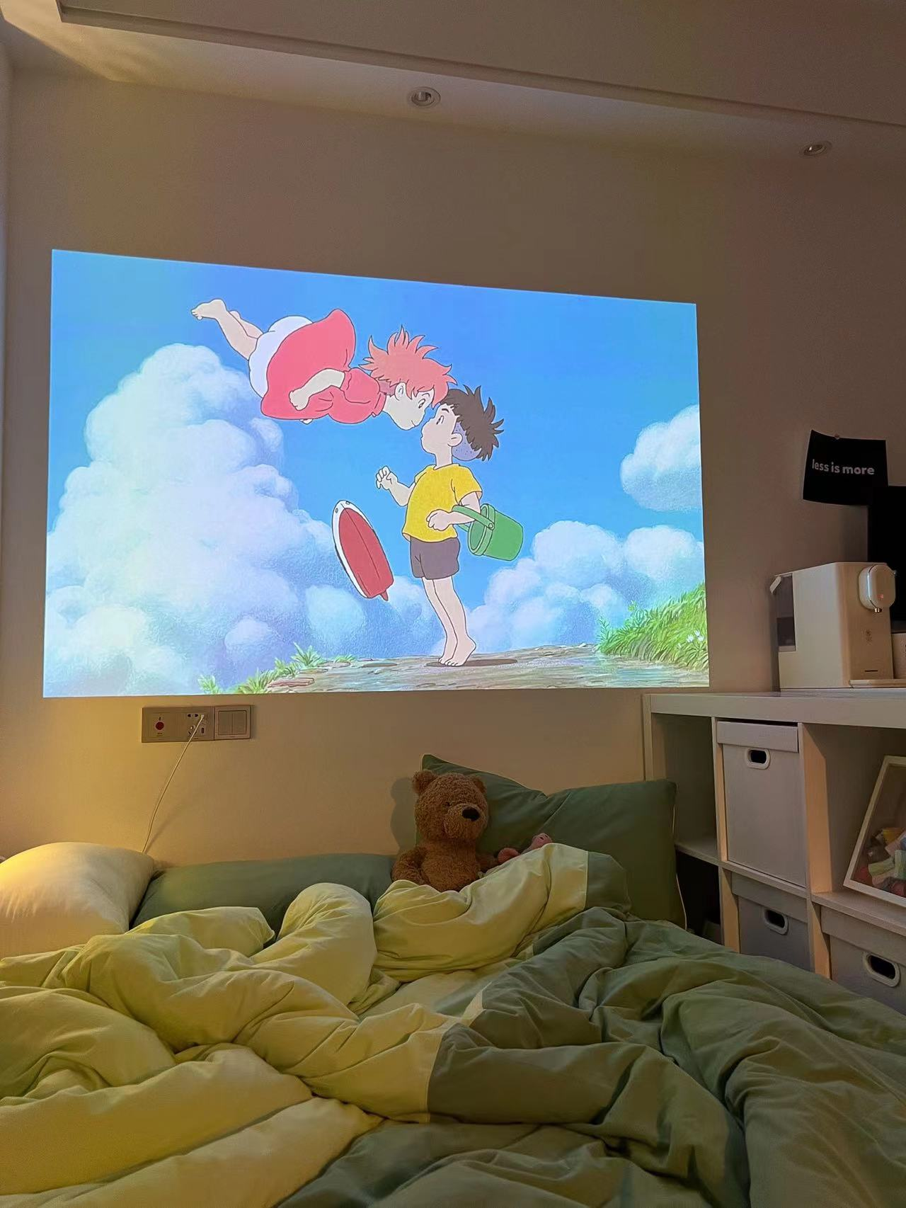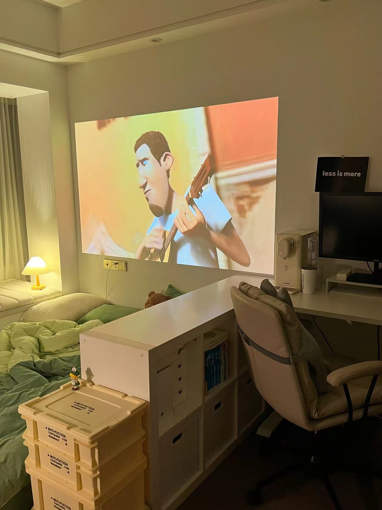 买投影仪还是要看画质啦,想要在卧室开灯也能呈现好画面,对投影仪的要求还是蛮高的;当贝NEW D3X拥有的1050ANSI流明的亮度,完全可以满足卧室开灯看的需求,当然关灯效果更棒,画面色彩饱满,1080P的分辨率也使得影片上的每个细节都能清晰呈现。打开一部宫崎骏的动漫和闺蜜一起看,只想将这幸福的时刻定格。