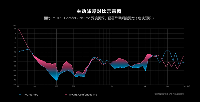 深度降噪量最多可达 42dB,测试数据来自 1MORE 实验室