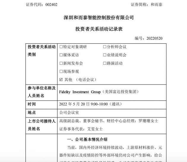 5月21日消息,和而泰披露的投资者关系活动记录表显示,5月20日,和而泰在接受美国富达投资集团调研时表示,汽车电子智能控制器业务板块是公司重点战略布局之一。