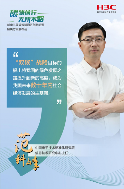 园区通常涉及较多的碳排放场景,因此也成为了“碳中和”目标实现的主要载体。中国电子技术标准化研究院信息技术研究中心主任范科峰为本次发布会带来了主题演讲,分享了零碳智慧园区标准制定和落地的最新进展。范科峰表示,“零碳智慧园区的核心特色在于数字化技术驱动,在实践中要以蓝图架构为基础构建标准体系,以技术为先锋支撑园区零碳发展和核心竞争力提升,以试点为牵引探索技术方法和工作路径。”目前,在中国电子技术标准化研究院的指导下,新华三正在联合多家企业开展更多与零碳智慧园区相关标准的研究。