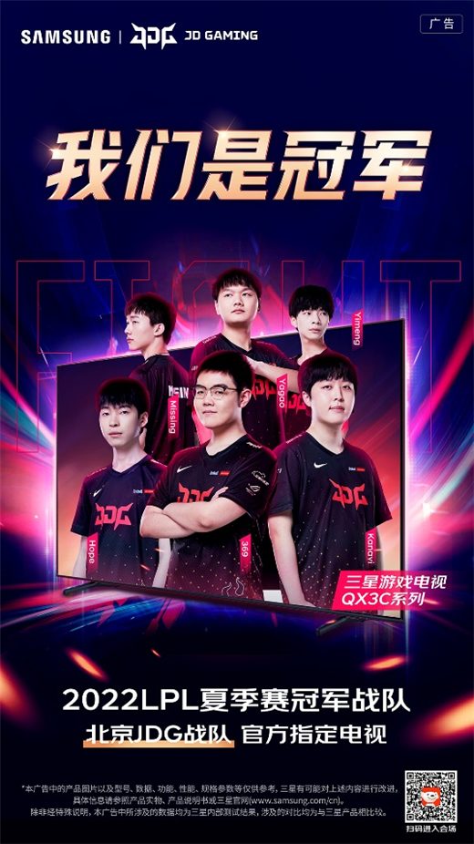 近日,三星推出量子点游戏电视新品QX3C系列,其搭载高画质、高刷新率和专为中国消费者打造的全新Tizen系统,为游戏玩家打造极具震撼的使用体验。作为2022英雄联盟职业联赛夏季赛总冠军——JDG战队(JDG京东电子竞技俱乐部)的指定电视,三星QX3C凭借极致的音画表现和强大的游戏性能,定可成为玩家大屏游戏终端的首选,为热爱游戏的你带来振奋人心的感官沉浸。