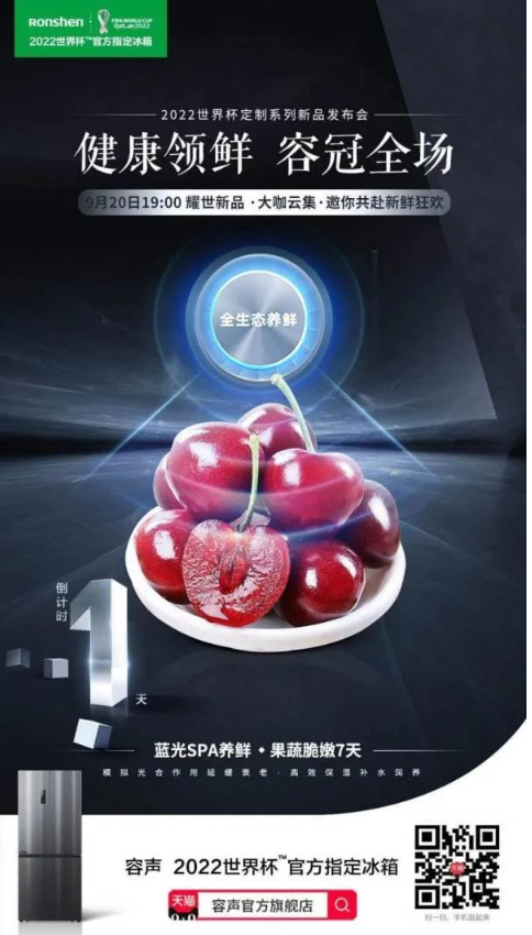 顶级足球盛宴进入倒计时,2022卡塔尔™世界杯指定冰箱率先冲击世界杯。9月20日,容声冰箱2022世界杯™定制系列新品发布会即将高燃来袭,冰箱界的“银河舰队”蓄势起航。