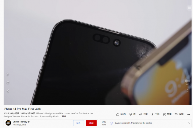 据报道,YouTuber @Unbox Therapy 分享了对 iPhone 14 Pro Max 机模的上手体验,我们可以看到这一次的 Pro 系列机型有两个前面板打孔:药丸 + 圆孔,分别容纳 Face ID 组件和前置摄像头,辨识度拉满。